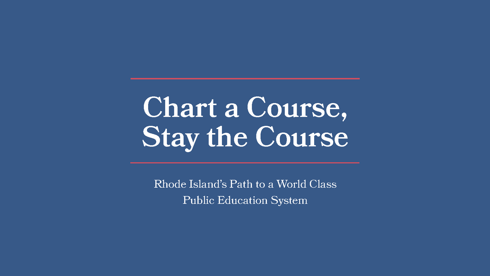 "Rhode Island debe trazar un rumbo y mantenerlo en el camino hacia la creación de un sistema educativo público de categoría mundial que prepare a todos los estudiantes para triunfar en la vida y contribuir productivamente a la comunidad"